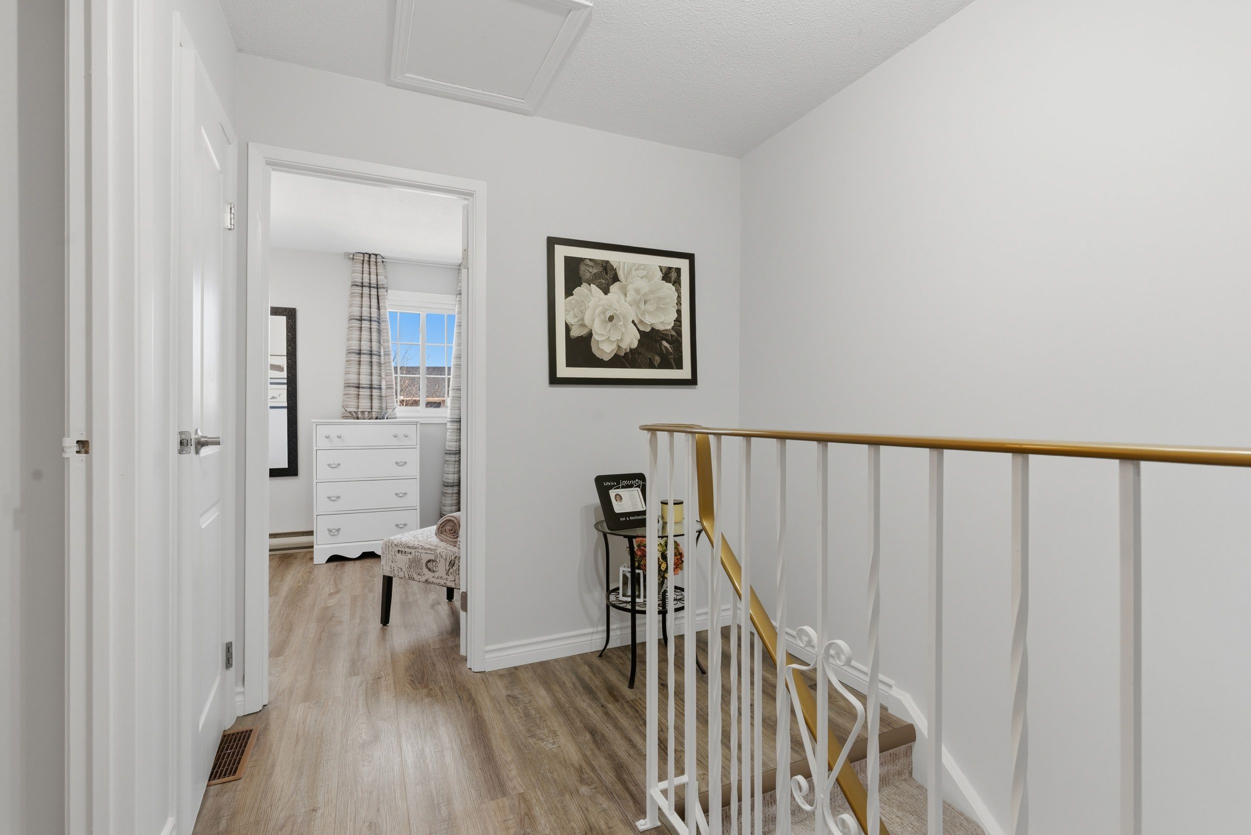 Turnkey, Extensively Updated 2-Bedroom Condo Townhome with Private Parking. Welcome to a home that offers something today's buyers are actively searching for: affordability, peace of mind, and the feeling that everything has already been done. This bright and beautifully maintained 2-bedroom, 2-bathroom condo townhome has been extensively updated throughout, offering a true turnkey opportunity. From the moment you step inside, you'll notice the seamless flow of new flooring throughout the entire home, complemented by updated doors, modern hardware, and stylish light fixtures that create a clean, contemporary feel. The modern and tastefully renovated kitchen is a standout feature, complete with new cabinetry, stone countertops, stainless steel appliances, and updated fixtures-designed for both everyday ease and entertaining. The main level offers a functional and inviting layout, featuring a spacious living area open to a dedicated dining space, and a convenient 2-piece powder room for guests. Upstairs, the home continues to impress with two well-sized bedrooms, including a large primary bedroom with a double closet and cozy fireplace, adding warmth and character. The second bedroom is freshly painted with ample storage-ideal for a home office, guest room, or growing family. The 4-piece bathroom has been updated with a modern vanity and fixtures, maintaining a clean, refreshed look. The partially finished basement provides valuable additional space with two separate rooms currently used as a home gym and flex space. Whether you need a home office, guest area, or additional living space, this level offers versatility and easily adaptable for your current lifestyle. Step outside to your private, fenced patio with mature maple tree, creating a quiet outdoor retreat-perfect for morning coffee or unwinding at the end of the day. Close to all amenities: shopping, public & catholic schools, hospital, Niagara College, highways, parks and trails. Just move in!